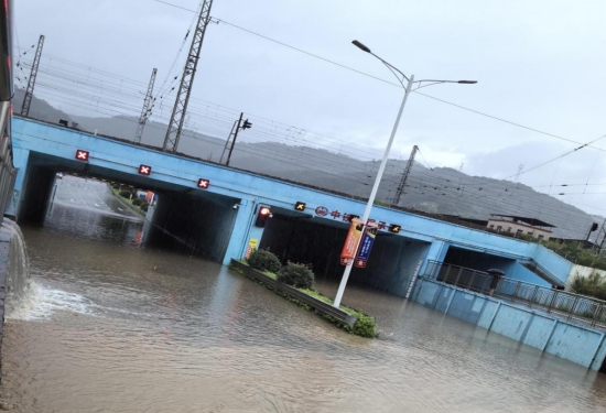 經(jīng)過現(xiàn)場察看,由于短時間降雨量太大,龍津河水位暴漲高于通道出口頂標高,河水倒灌至下穿通道導致交通中斷,下穿通道水泵房三臺水泵全部啟動抽水也無法滿足排水要求。公司防汛小組到達現(xiàn)場后,連夜組織人員拉好警戒線,設置警示標志,防止車輛進入下穿通道,并調度4輛應急車輛及時排水并清洗路面;同時,提前與鐵路部門、交警部門聯(lián)系,暫時封閉該段線路。經(jīng)過6小時的不斷抽水,路面已基本暢通,搶險過程未發(fā)生任何險情和人員傷亡。