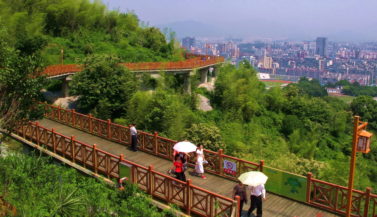 蓮花山底南環(huán)路地面標高為330米,山頂標高為490.606米,山高160米左右,山頂已開發(fā)為休閑場所,并建有世紀鐘樓,山腳可挖掘的景點不多,因此決定在半山腰開辟一條市民休閑的木棧道,將公園增加一個休閑觀光的好場所,并可成為蓮花山一道亮麗的風景線。因此在半山腰422米高程建設一條環(huán)山的木棧道。為盡量少破壞山體植被,木棧道采用棧道橋形式,全長3781.88米,全寬3.5米(包括欄桿寬度),凈寬3.0米,蓮花山棧道橋工程總投資7610萬元。