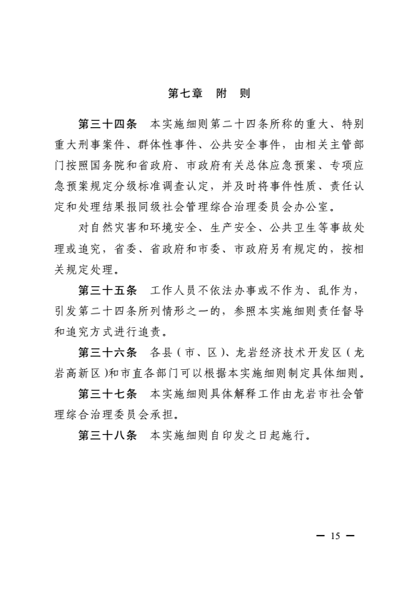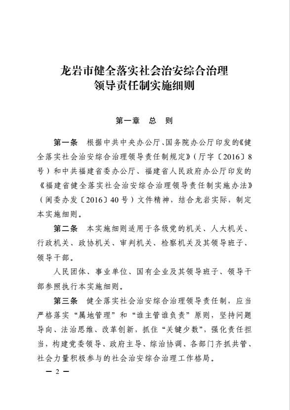 龍巖市健全落實(shí)社會(huì)治安綜合治理領(lǐng)導(dǎo)責(zé)任制實(shí)施細(xì)則(巖委辦發(fā)【2017】11號(hào))