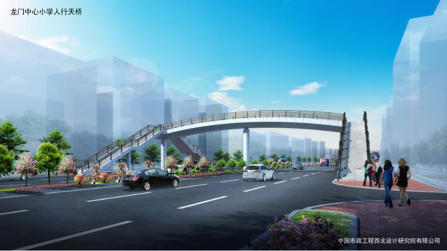 龍門中心小學(xué)人行天橋位于羅龍西路龍門中心小學(xué)西側(cè)約80米,主梁采用鋼箱型連續(xù)梁,腹板為圓弧形,主梁全長(zhǎng)33.8米,寬4米。梯道坡度1:2,長(zhǎng)16.9米、寬米,中間設(shè)置緩步平臺(tái)??偼顿Y約400萬元。