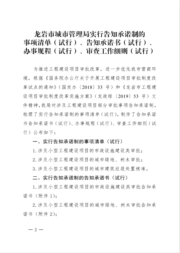 龍巖市城市管理局關(guān)于印發(fā)工程建設(shè)項目審批制度改革有關(guān)政策的通知(龍城[2019]91號)