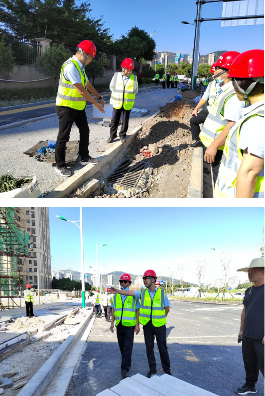 在檢查現(xiàn)場,檢查組一行認真查看道路施工安全隱患,并要求施工單位立即整改,同時,市政集團黨支部書記、董事長徐旺興還強調(diào),一要嚴(yán)把質(zhì)量關(guān),強化質(zhì)量監(jiān)督,抓質(zhì)量的同時還要重安全,堅持“標(biāo)準(zhǔn)化、規(guī)范化、程序化”作業(yè),施工過程嚴(yán)格按照操作規(guī)程施工,嚴(yán)禁違章施工,確保安全生產(chǎn);二要排除安全隱患,對檢查中發(fā)現(xiàn)的安全問題要及時與項目負責(zé)人對接溝通,并正式通車前逐項整改,不留死角;三要強化全局意識,完善工作機制,施工和監(jiān)理單位要緊密協(xié)調(diào)配合,提高工作效率,嚴(yán)控時間節(jié)點,全力以赴打好項目攻堅戰(zhàn),確保如期通車,為廣大群眾提供“優(yōu)質(zhì)、安全、舒適”的通行環(huán)境。